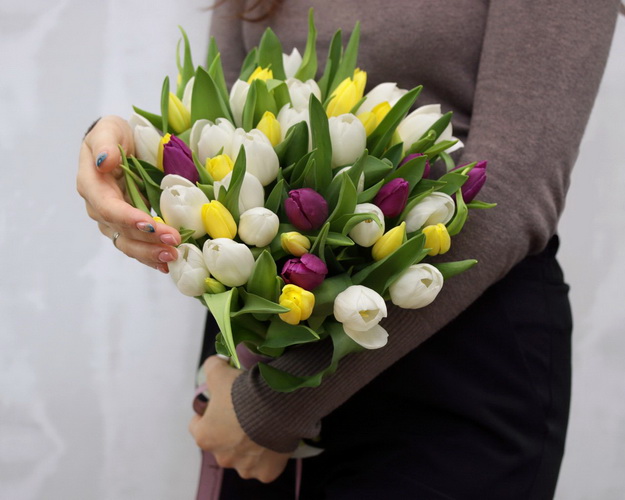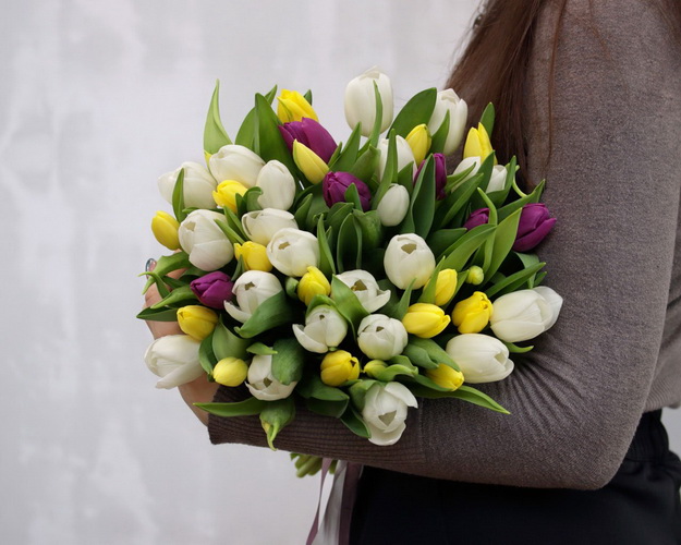 Cклад: тюльпан 51 шт., Стрічка 2 шт.