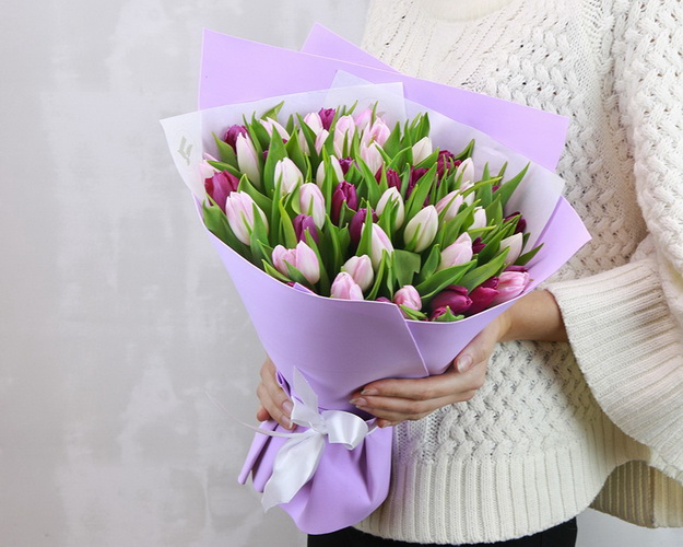 Букет із 51 тюльпану мікс в упаковці