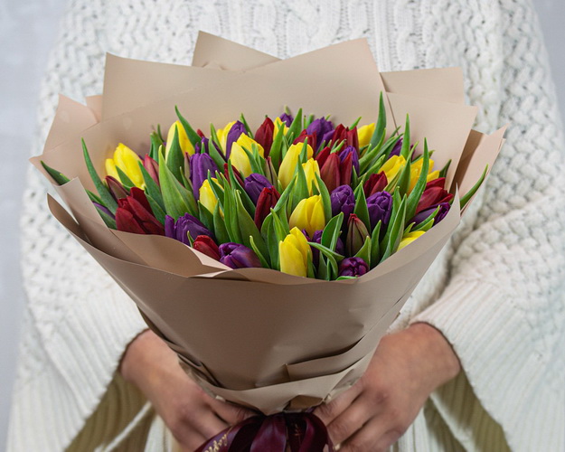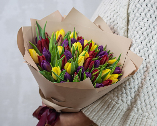 Cклад: тюльпани 51 шт., Плівка 2 шт., Стрічка 2 шт.