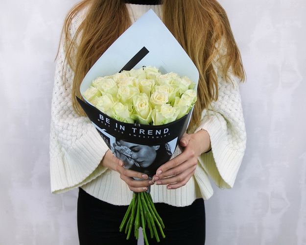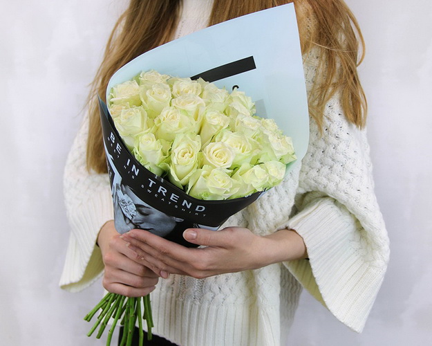Cклад: троянда Кенія 35-40 см 25 шт., Плівка 1 шт., Стрічка 1 шт.