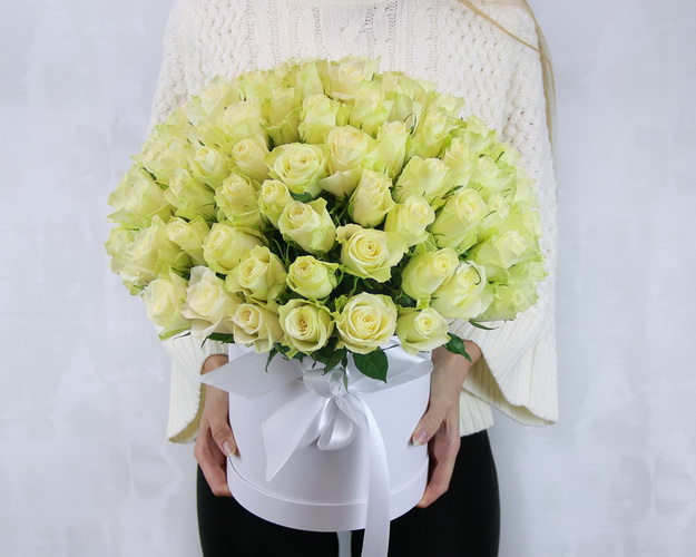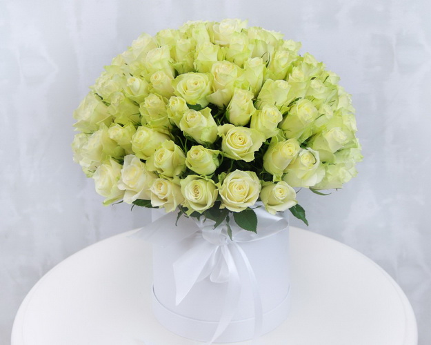 Cклад: троянда Кенія одноголова 40 см 101 шт., оазис 3 шт., стрічка 2 шт., коробка L 1 шт.
