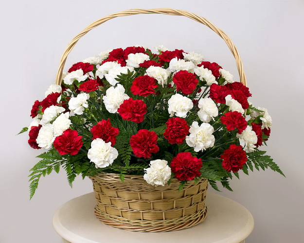 Cклад: гвоздика 200 шт, папороть, корзина 1 шт, губка флористична 3 шт.