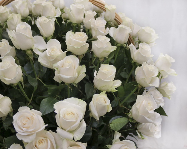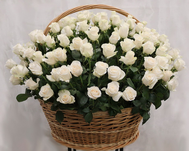 Кошик квітів зі 101 білої троянди