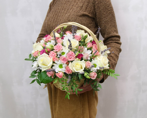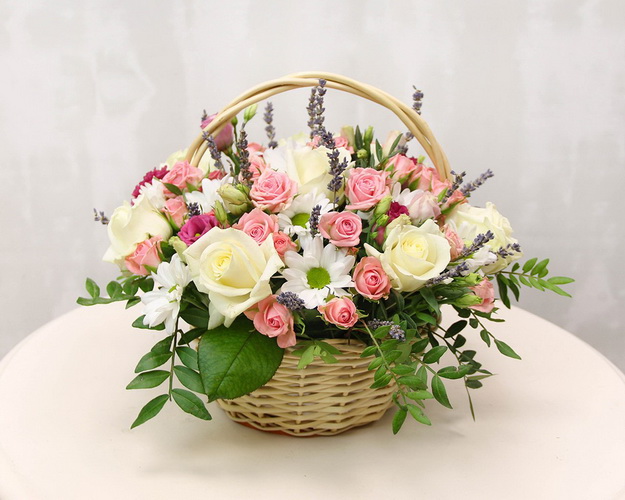 Cклад: мікс квітів, оазис 1 шт., Кошик 1 шт.