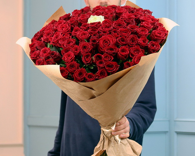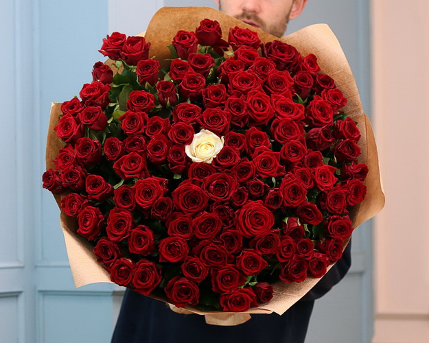 Цей букет - незвичайний та розкішний подарунок для коханої людини. Біла троянда в оточенні червоних - як ваша обраниця, оточена вашою любов'ю та увагою. Квіти повною мірою розкажуть про ваші почуття та допоможуть підкорити будь-яке серце.