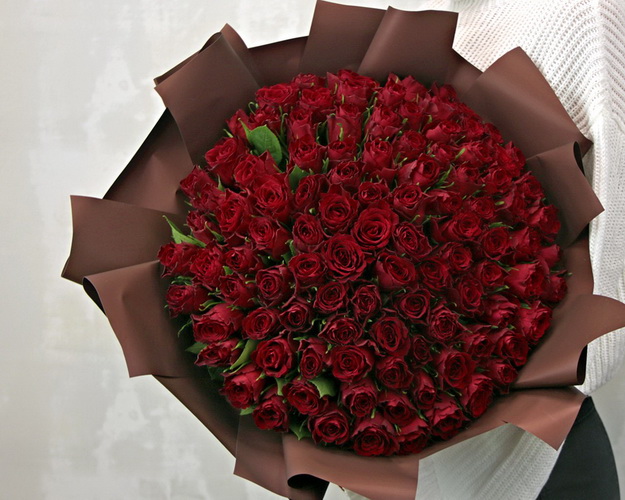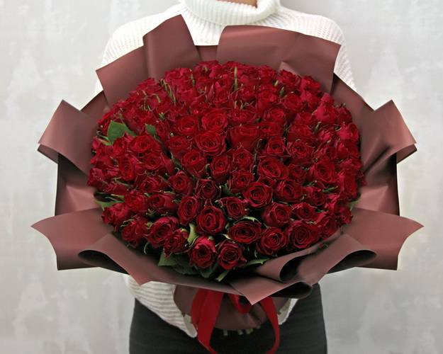 Cклад: троянда Кенія 101 шт., Плівка 4 шт., Стрічка атласна 1 шт.