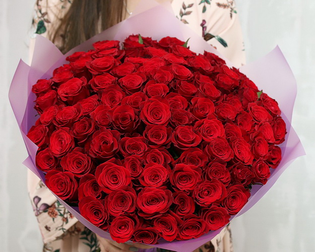 Сто одна червона троянда – вірний знак кохання та прихильності. Пишний букет допоможе справити враження і подарує найяскравіші емоції.