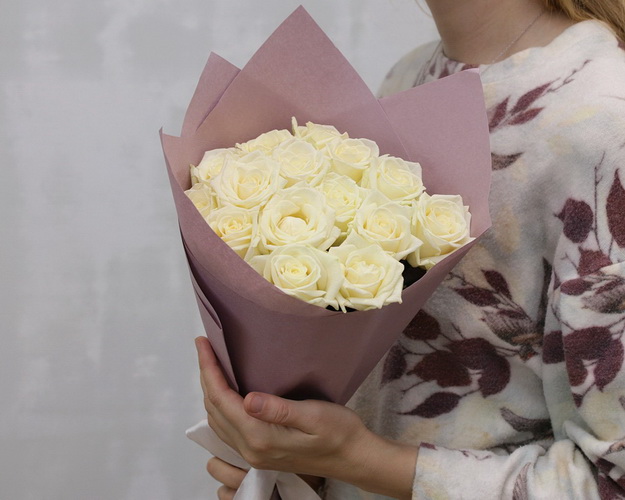 Букет із 15 білих троянд в упакуванні