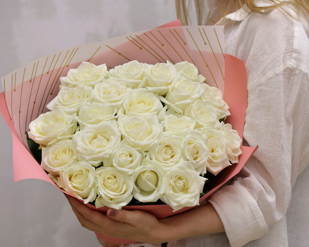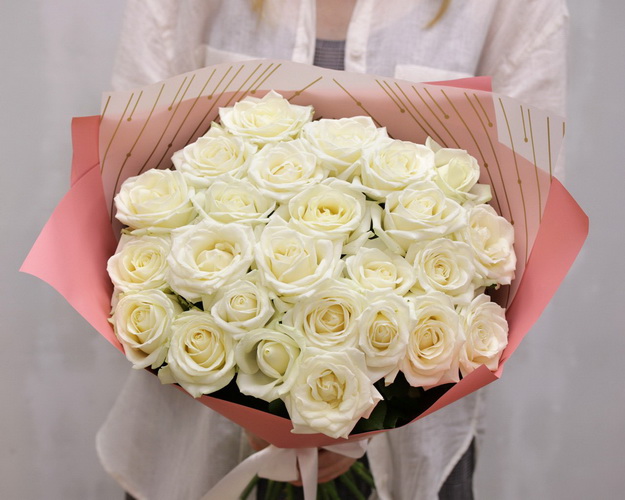 Букет із 25 білих троянд в упакуванні