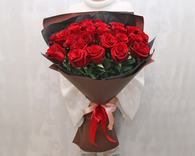 Букет із 25 червоних імпортних троянд в упакуванні