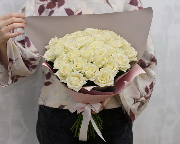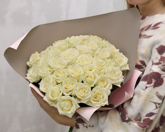 Букет з 35 білих троянд в упакуванні