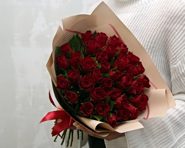 Cклад: троянда Кенія 35 шт., Плівка 2,5 шт., Стрічка 1 шт.