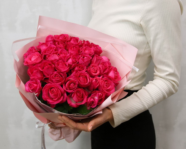Букет із 35 малинових троянд в упакуванні