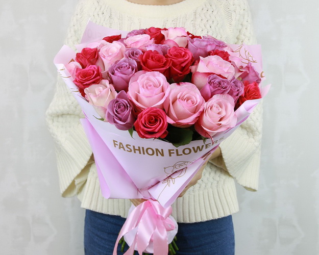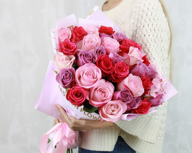 троянда Еквадор 35 шт., Плівка 3 шт., Стрічка атласна 1 шт. Можливість замовлення букета однієї кольорової гами уточнюйте у наших менеджерів під час підтвердження замовлення.Ніжні відтінки бутонів та стильна упаковка роблять цю композицію універсальним подарунком до будь-якої урочистості. Вишукані троянди підійдуть для сімейного свята, ювілею, дня народження - або просто для того, щоб порадувати близьку людину.