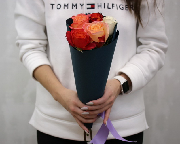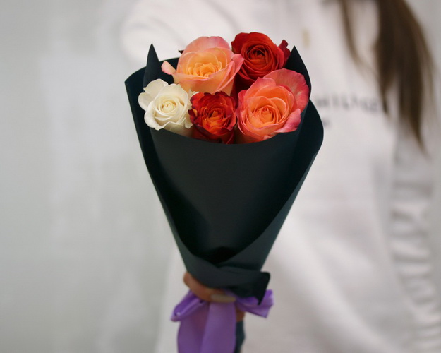 Букет із 5 троянд яскравий мікс в упакуванні