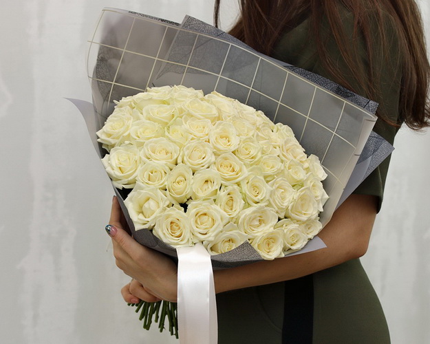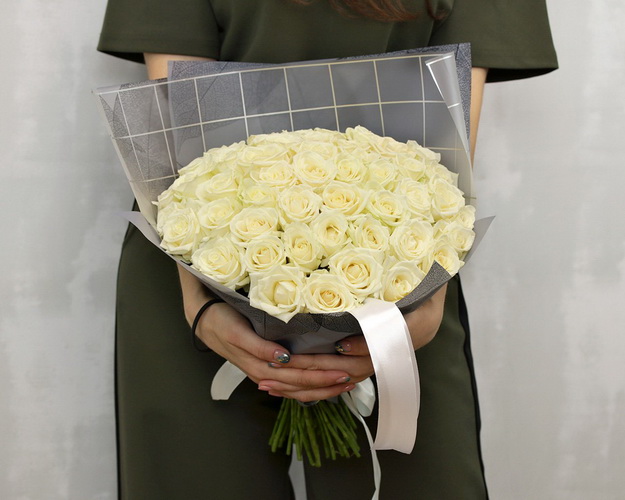 Букет із 51 білої троянди в упакуванні