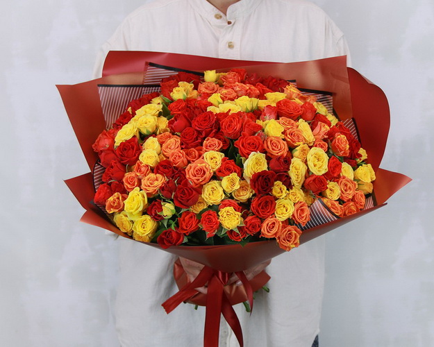 Букет із кущової троянди порадує вас та ваших близьких яскравими фарбами, свіжістю та красою мініатюрних бутонів, витончено оформлених за допомогою матової плівки. Такий подарунок буде доречним на будь-якому святі.