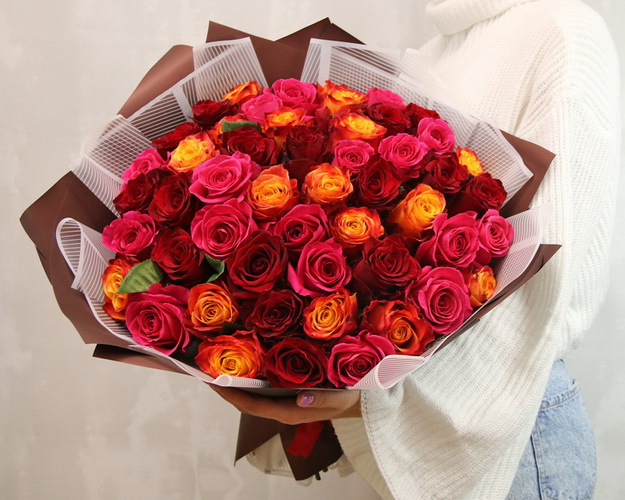 Cклад: троянда Еквадор 40-50 см 51 шт., Плівка 3 шт., Стрічка 1 шт.