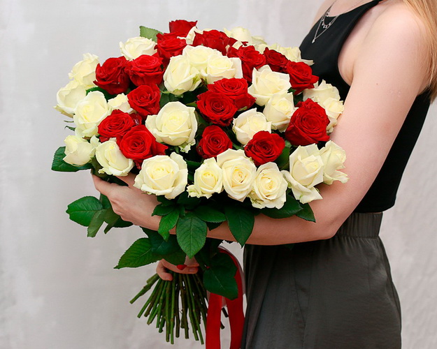 Букет із червоних та білих троянд стане чудовим подарунком для коханої. Ароматні квіти розкажуть все про ваші почуття, створять романтичний настрій та підкреслять важливість моменту.