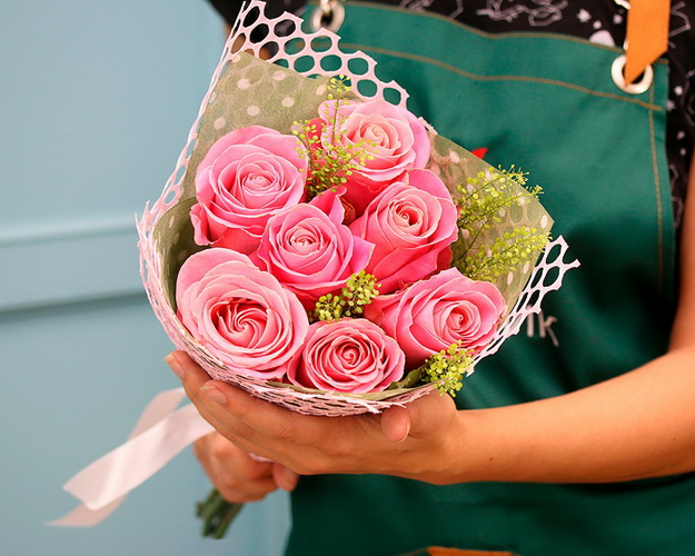 Поєднання ніжно-рожевих бутонів та пухнастої зелені подарує заряд гарного настрою та допоможе справити враження на побаченні, привітати та порадувати близьку людину.