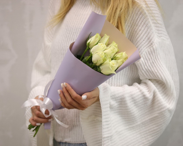 Букет із 9 білих троянд в стильній упаковці