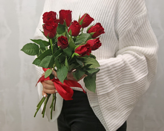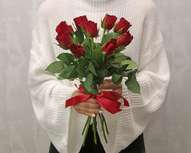 Cклад: троянда Кенія 9 шт., Атласна стрічка 1 шт.
