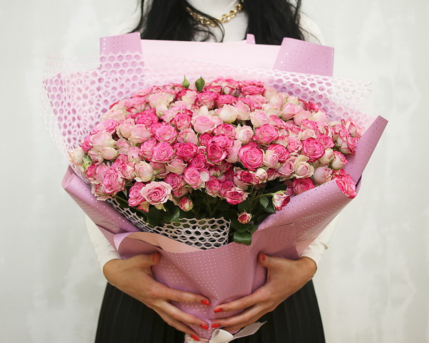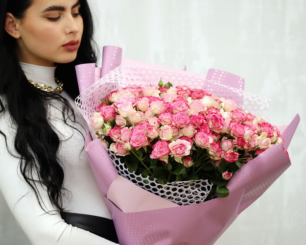 Букет 51 кущової троянди розовий мік в упакуванні