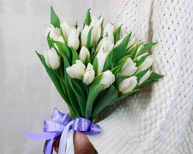 Cклад: тюльпан 25 шт., Стрічка 3 шт.