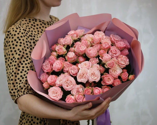 Повітряний букет з кущових троянд ніжно-рожевого відтінку розповість не тільки про ваш бездоганний смак, а й про ваші почуття!