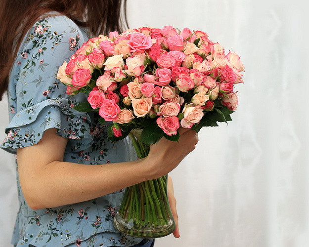 На фото представлений букет із 35 шт. Ціна вказана на штуку. Упаковку та стрічку за бажання можна додати до замовлення. Реальний колір товару може трохи відрізнятися від представленого на фото. *Вказані ціни діють при оформленні замовлення на сайті.