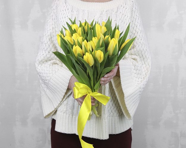 Cклад: тюльпан стандарт 25 шт., Стрічка 3 шт.