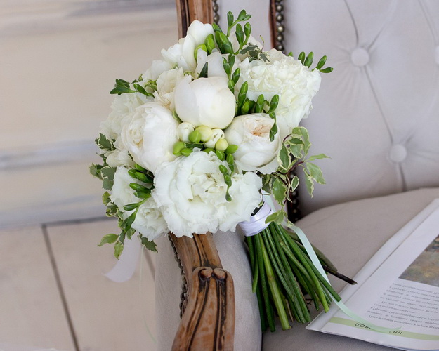 півонія, троянда, фрезія, лізіантус, піттоспорум, стрічка.