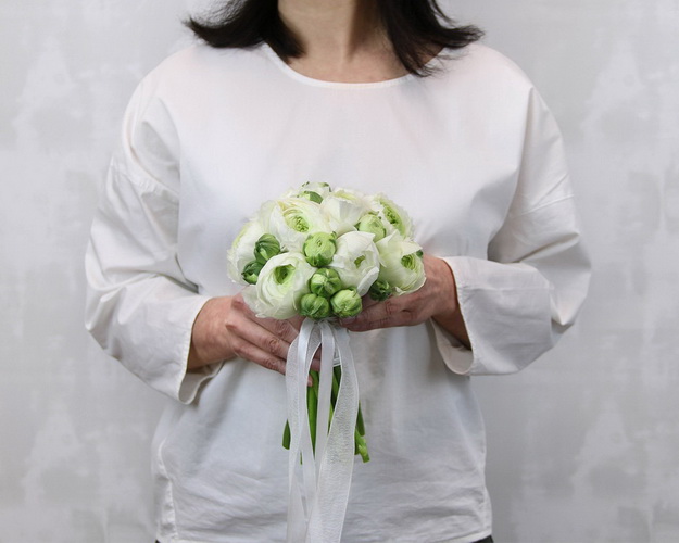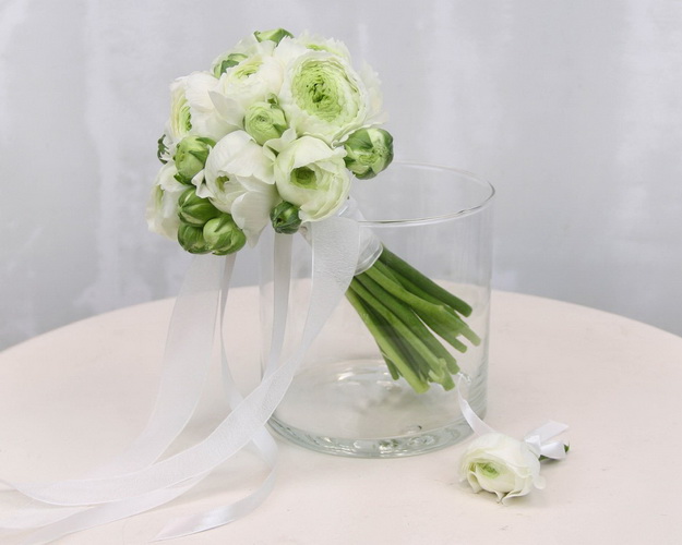 Cклад: ранункулюс, стрічка 3 шт. Бутоньєрка входить у вартість букета.