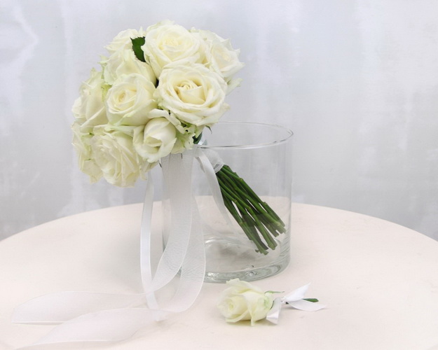 Cклад: троянда 40-50 см., Стрічка 3 шт. Бутоньєрка входить у вартість букета.