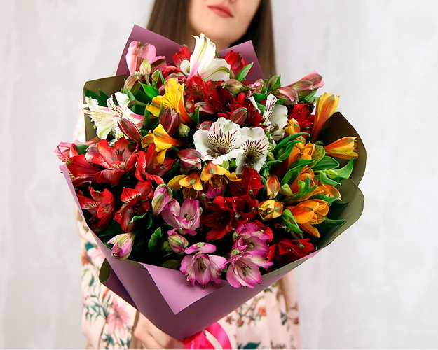 Букет із 15 альстромерій мікс у стильній упаковці.