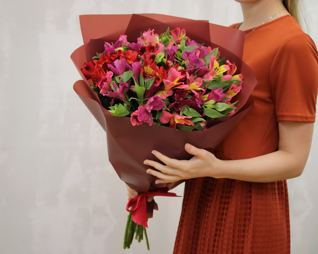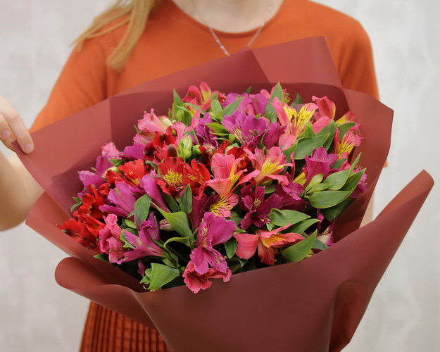 Букет із 17 альстромерій яскравий мікс у стильній упаковці.