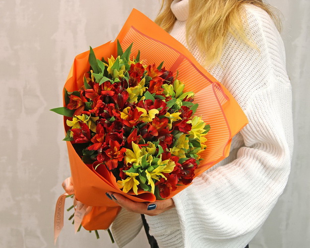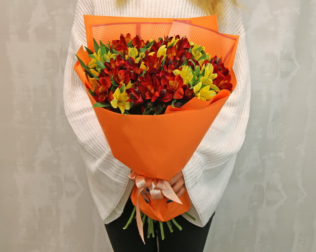 Cклад: альстромерія 21 шт., Плівка 2,5 шт., Стрічка 1 шт.