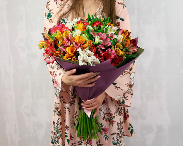 Букет із 35 альстромерій мікс у стильній упаковці.