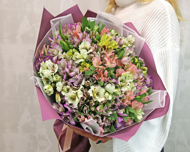 Букет із 51 альстромерії ніжний мікс в упаковці