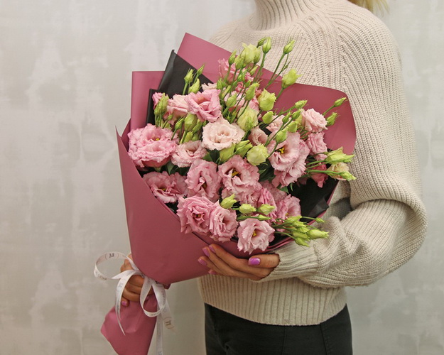 Букет із 15 рожевих еустом у стильній упаковці.
