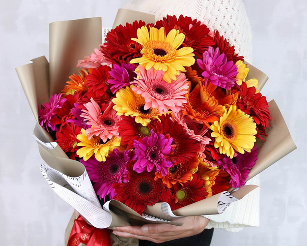 Букет з 49 гербер стандарт мікс у стильній упаковці