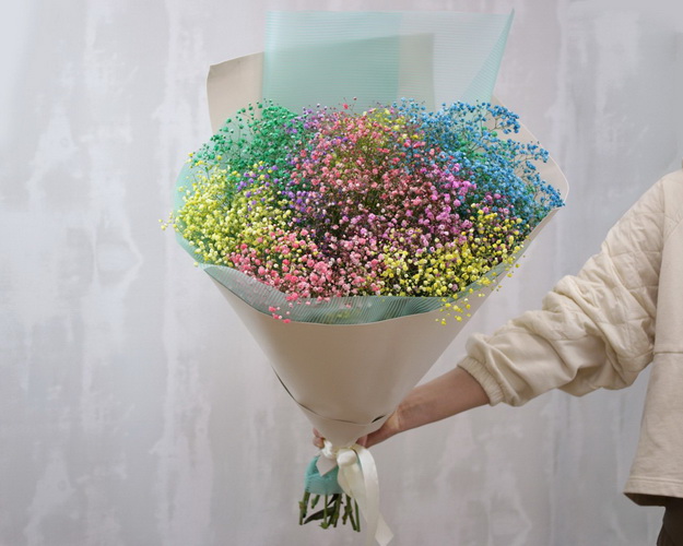 Cклад: гіпсофіла 15 шт., Фоаміран 2 шт., Плівка 2 шт., Стрічка 1 шт.