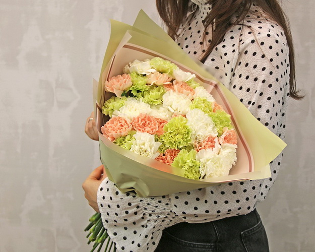 Букет з 35 діантусів (гвоздик) мікс у стильній упаковці