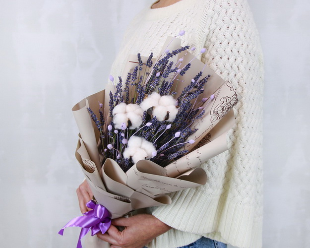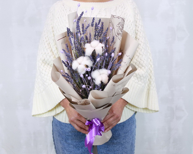Cклад: бавовна краш. 3 шт., Лаванда 0,5 шт., Астранція 5 шт., Плівка 1,5 шт., Стрічка 1 шт.
