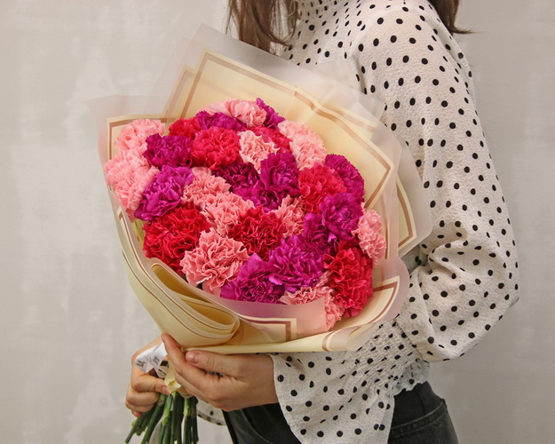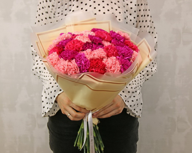 Букет з 35 діантусів яскравий мікс у дизайнерській упаковці