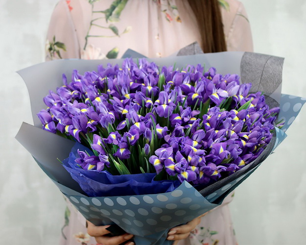 Букет із 101 синього ірису в стильній упаковці.