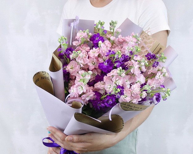Букет із 15 матіол мікс у стильній упаковці