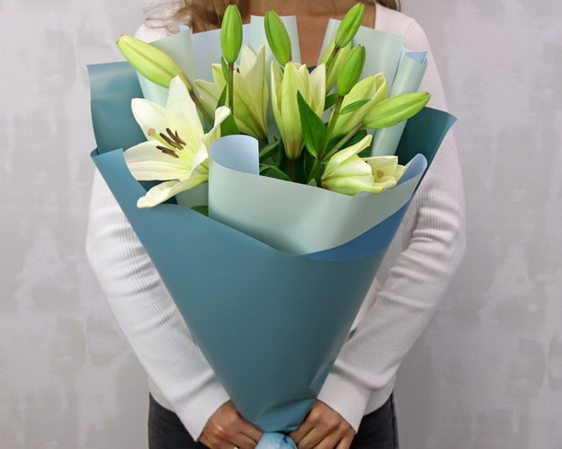 Букет з 3 лілій азіатських у дизайнерській упаковці