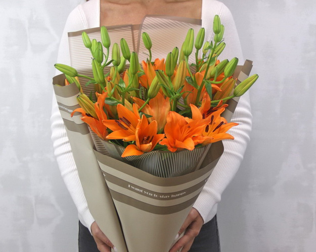 Cклад: лілія азіатська 7 шт., Плівка 2 шт., Стрічка 1 шт.