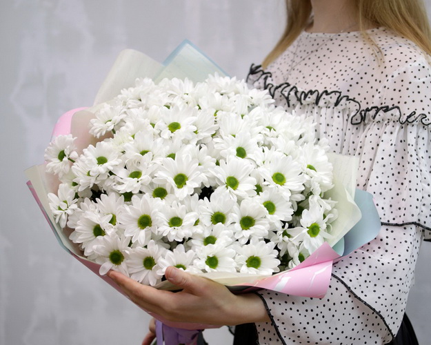Букет із 15 хризантем в стильній упаковці
